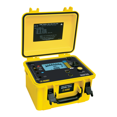 The Megohmmeter Model 6505 is a True Megohmmeter® portable instrument housed in a rugged field case that operates on either battery or line power. It performs voltage, insulation, and capacitance measurements. This instrument contributes to the safety of electrical installations and equipment.