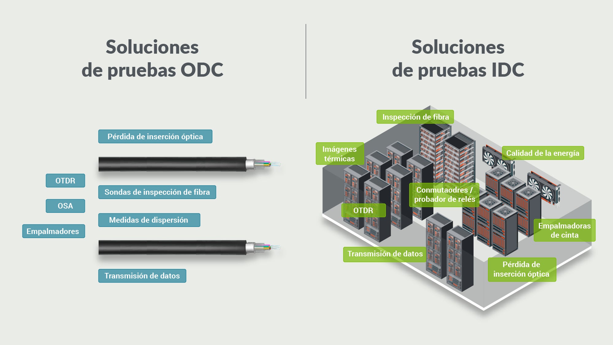 Mientras la demanda por nuevos centros de datos, mayor velocidad y más capacidad continúa al auge, y mientras la fibra va reemplazando rápidamente al cobre, acceder a los equipos de pruebas adecuados no es sencillo. Unas pruebas exhaustivas de redes y sistemas de potencia durante las fases de implementación, puesta en marcha y mantenimiento son fundamental para garantizar el rendimiento y el cumplimiento de los SLA del cliente.