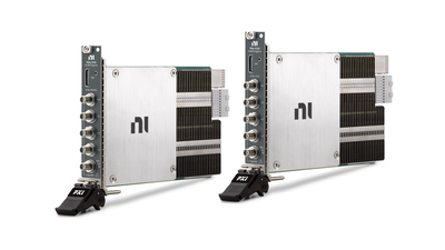 PXI FlexRIO Digitizers feature high-performance analog-to-digital converters with lightweight analog front-ends designed to maximize sample rate, bandwidth, and dynamic range. These modules use FPGAs from Xilinx alongside LabVIEW and Vivado programming options for custom algorithm implementation and real-time signal processing. For applications that require high channel counts, PXI FlexRIO Digitizers use the NI-TClk API and the timing and synchronization capabilities of PXI to achieve sub-sample synchronization between multiple modules in a chassis. These modules also feature an auxiliary I/O connector with GPIO for triggering or digital interfacing and the option for high-speed serial communication.