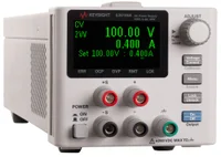 Keysight E36100 Series basic DC power supplies feature a compact size (2U, ¼-rack), a high-contrast OLED display that is viewable from any angle, and modern USB and LAN (LXI Core) connectivity. They also include low power current measurement capability and overvoltage, overcurrent, and overtemperature protection. You can control these power supplies via the intuitive front-panel interface, a Web interface running on a browser, a SCPI or IVI program, Keysight IO Libraries, or a BenchVue app running on your PC or mobile device.